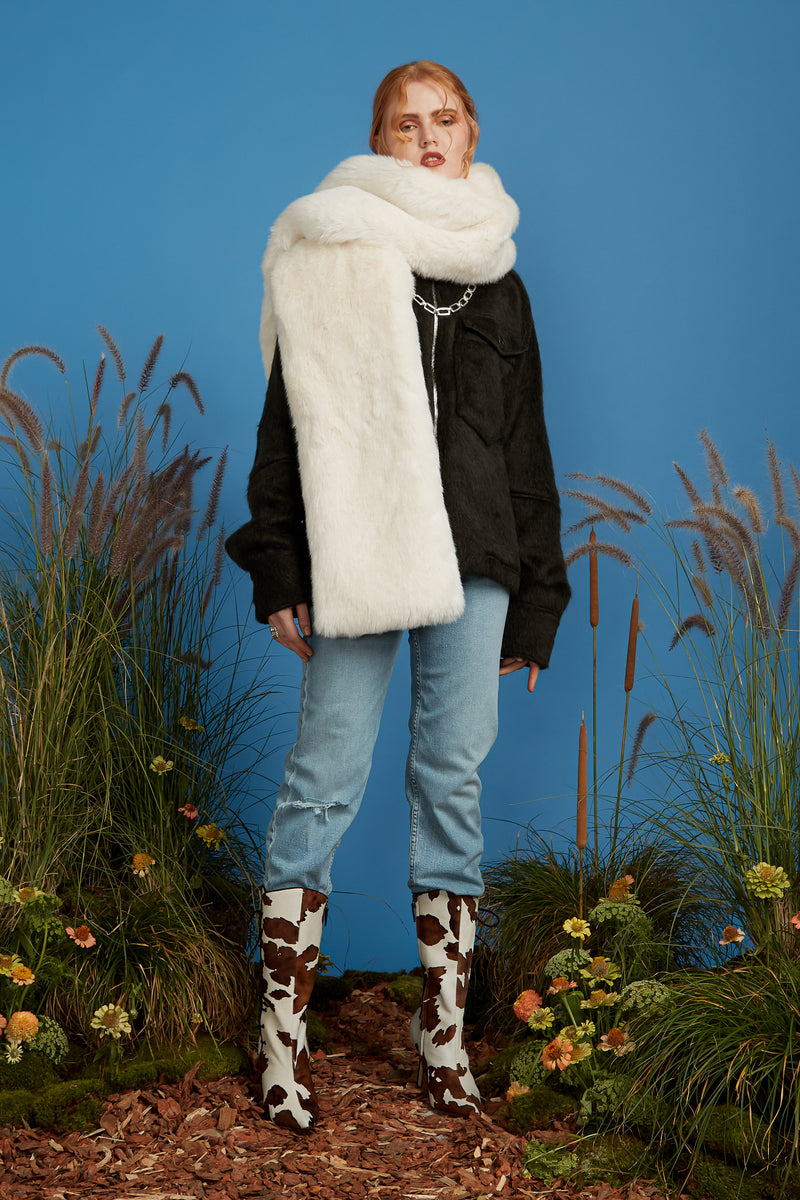 Margot Tenenbaum meets Margot Hemingway. Iconic daughters and fashion icons alike. The drama of a fur stole for the modern star whose infatuating presence and signature scent lingers after she’s already exited the crowded room. With a flair for the dramatic, she’s acquired a certain openness to opulence and is making a strong case for the fur scarf in any season.