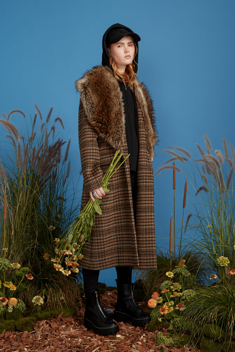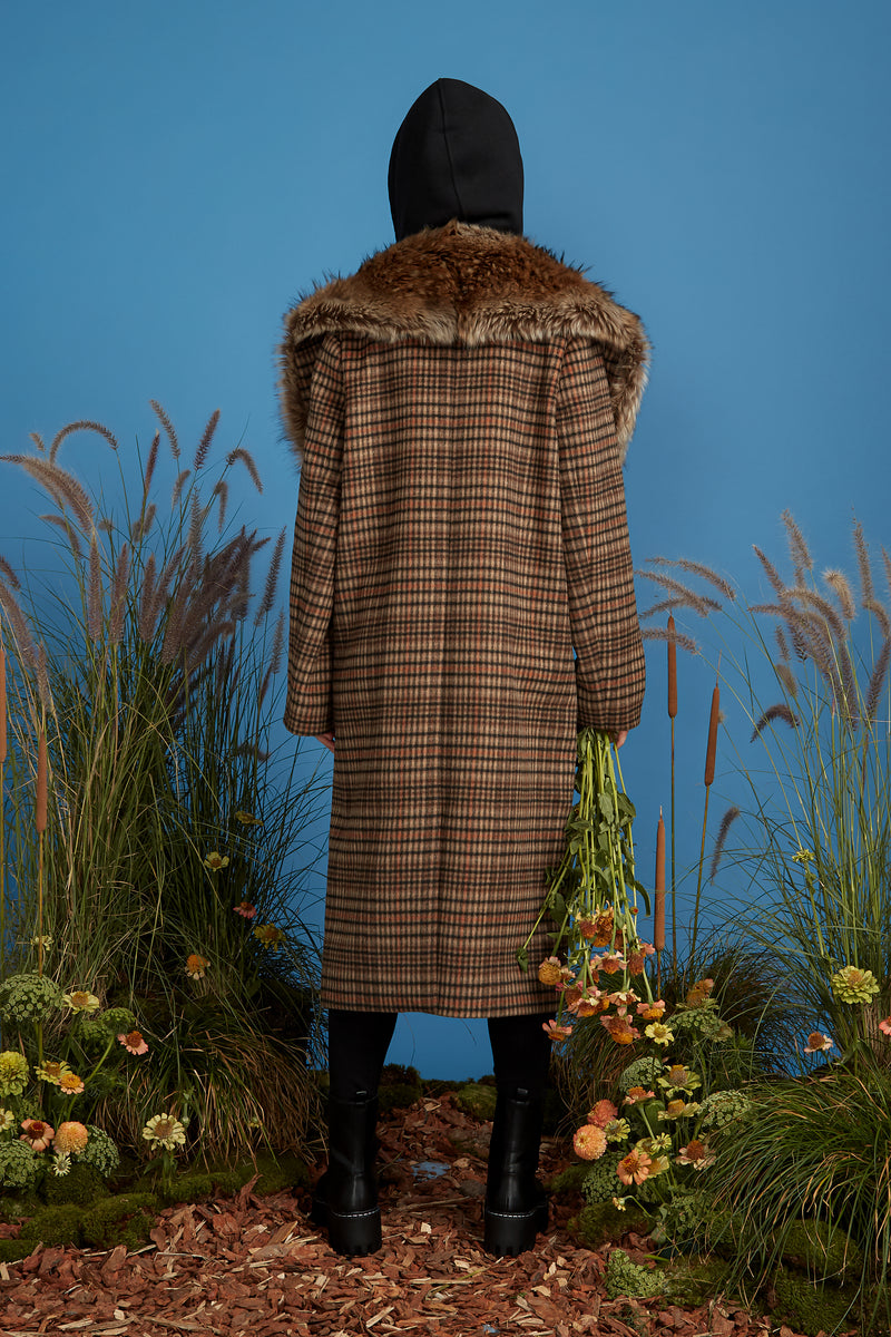 This is the ultimate fall and winter coat for anyone wanting their daily styling process simplified by providing a three-in-one look. A modern take on a classic wardrobe staple, this oversized plaid wool coat has a built in hoodie and faux fur collar to upgrade your standard coat to give it a street style edge. This three in one coat gives you an eclectic stylized look with minimal effort. Classic, sporty, and luxe wrapped in one.